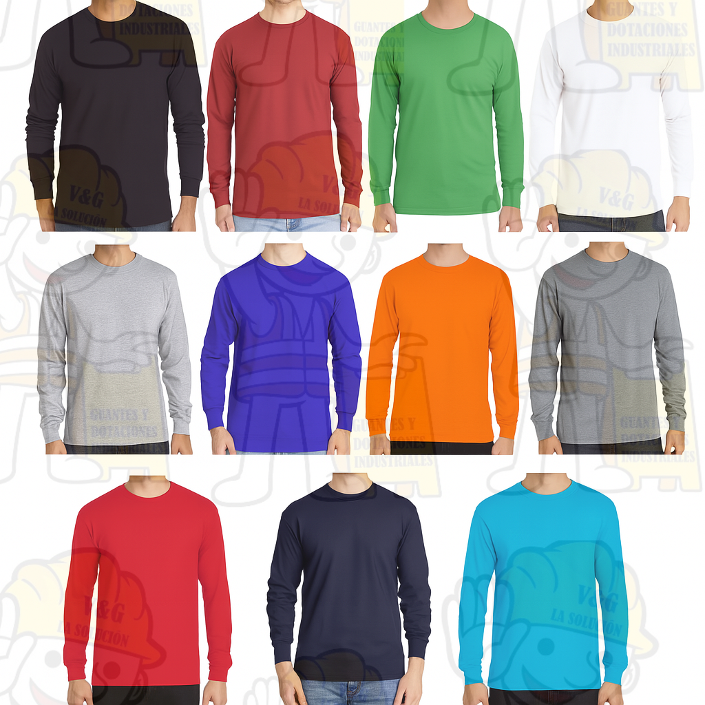 Prenda manga larga en algodón o poliéster, ideal para uso diario o dotación. Disponible en varios colores.