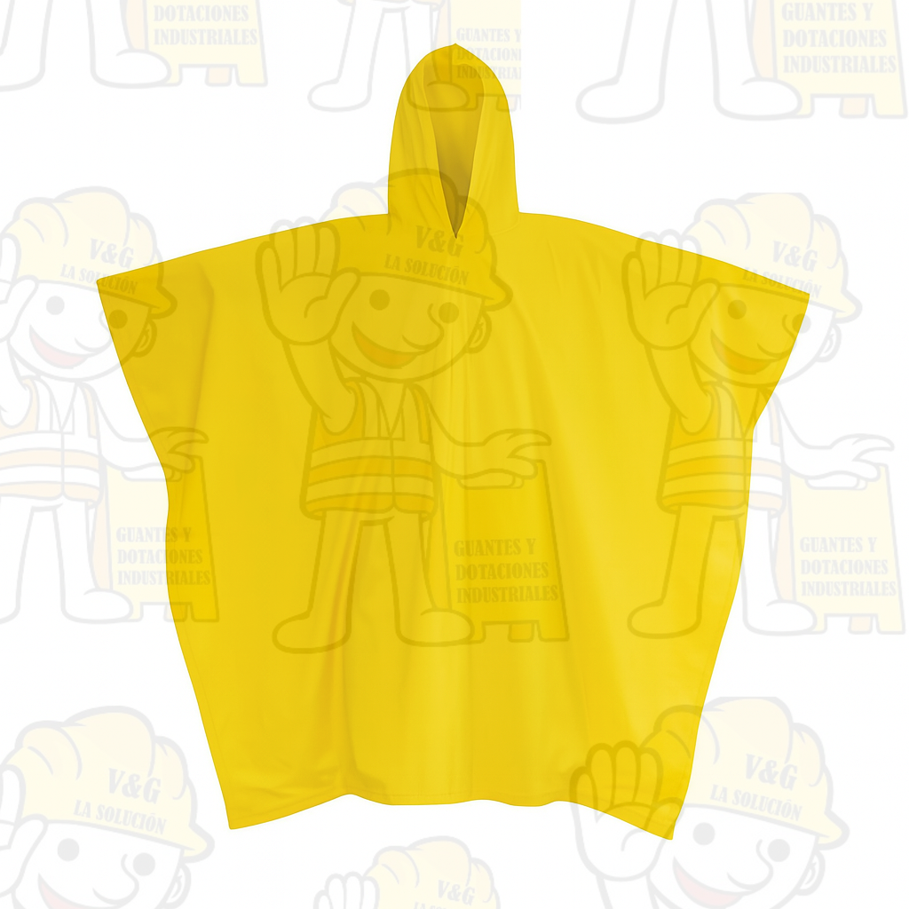 Diseño tipo poncho en PVC resistente, con capucha integrada. Proporciona amplia cobertura contra la lluvia, ideal para uso industrial, agrícola o urbano. Fácil de poner y transportar.