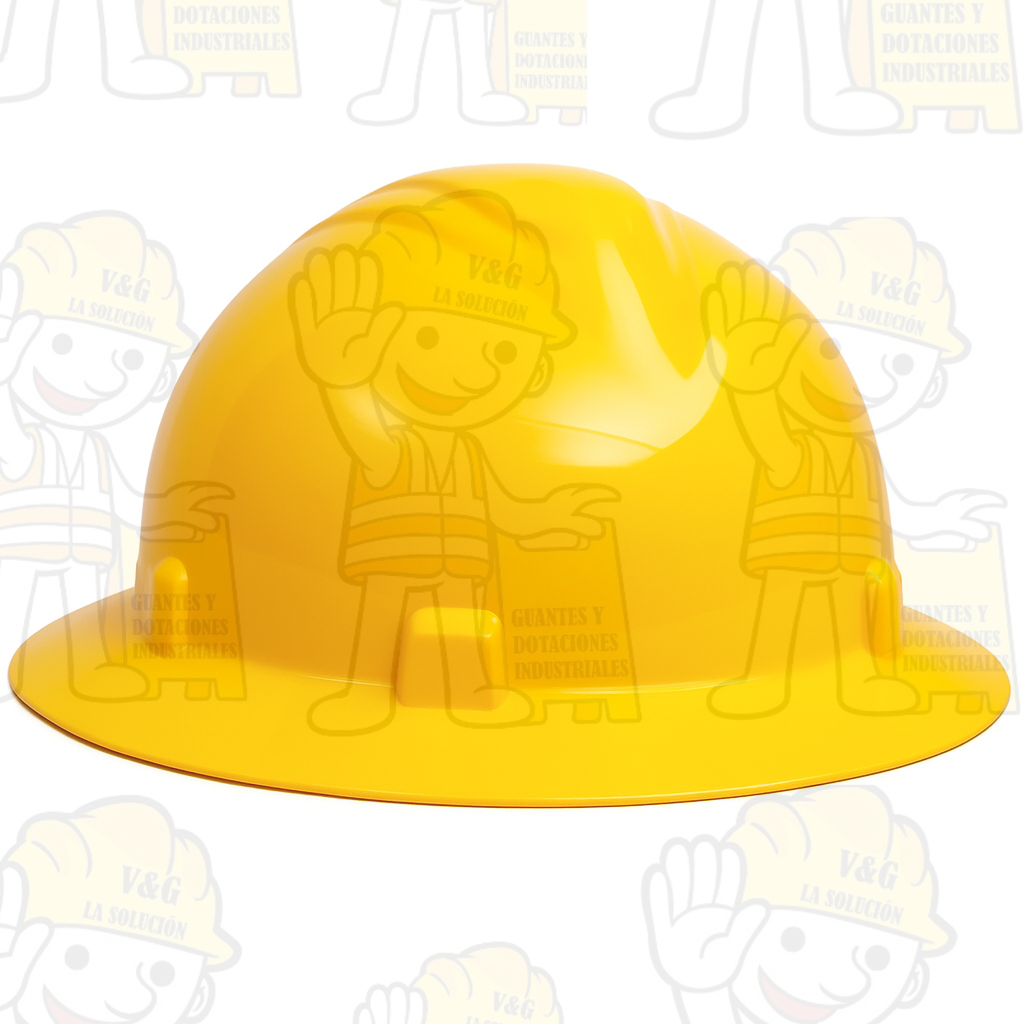 Casco de seguridad certificado tipo safari fabricado en polietileno de alta densidad. Cuenta con ala ancha para mayor protección contra sol y lluvia. Ideal para labores en exteriores como construcción, minería y obras civiles. Disponible con rachet y en varios colores.