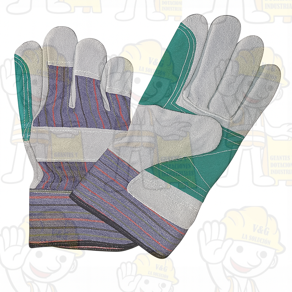 Guante en carnaza con lona rayada, ideal para trabajos generales. Ofrece buena resistencia a la abrasión y comodidad durante el uso prolongado.
