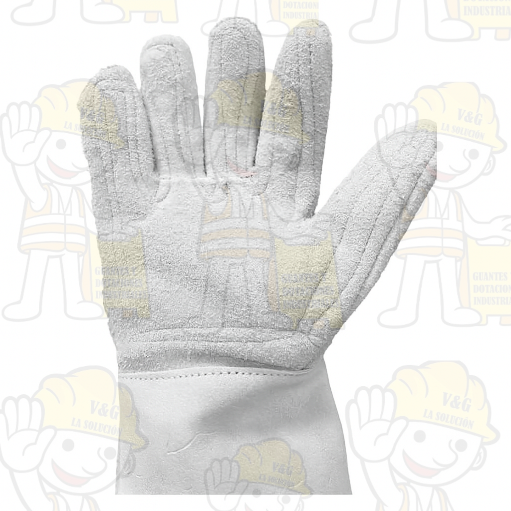 Guante de carnaza reforzado, ideal para trabajos pesados. Ofrece excelente resistencia al desgaste, abrasión y calor moderado. Cómodo, duradero y con refuerzo en palma para mayor protección.