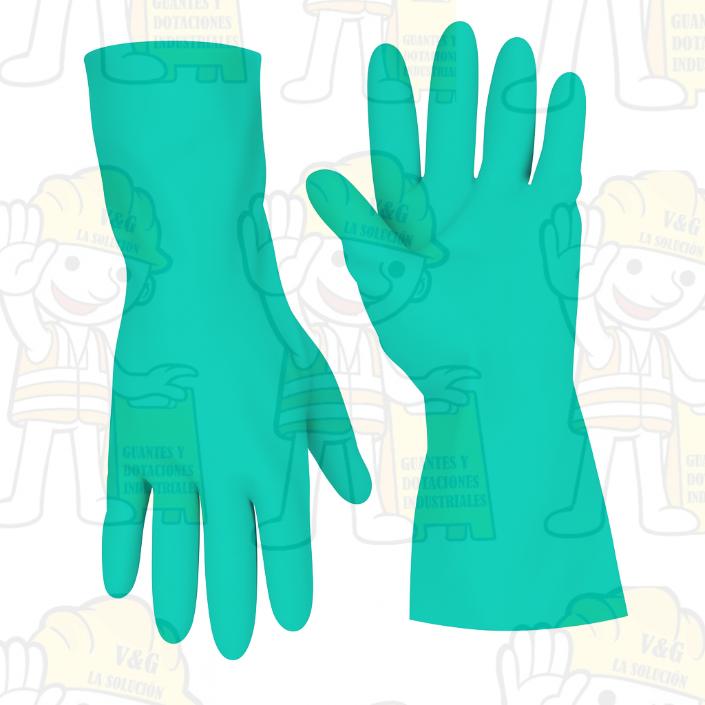 Guante resistente a químicos, aceites y solventes, ideal para procesos de limpieza industrial, manipulación de sustancias y trabajos con grasas. Cómodo, flexible y con buena sensibilidad táctil.