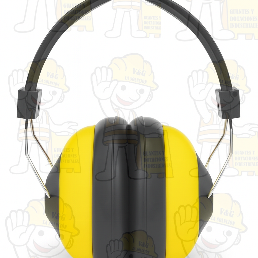 Protector auditivo tipo copa con estructura metálica para máxima protección.